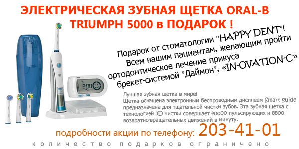 Предоставляемые услуги: Выгодные предложения! Акции !!! Лечение 2-х зубов по цене 1. Лечение световой пломбой от 350р. (Германия). Ультразвуковая чистка зубов 2 челюсти 850р. Чистка зубов ( AIR-FLOW, порошковая чистка ) 2 челюсти 700р. Украшение на зуб - скайс "SWAROWSKI" 350р. (Всё включено). Металлокерамика (Германия): 2500р. Микропротезирования из нейлона до 3-х зубов 6900р.(Всё включено). Немецкие съемные протезы 4500р. (Германия) (Всё включено). Керамические брекеты "IN-OVATION–C" обе челюсти 43000р. (Все включено + все визиты 1,5 года обслуживания бесплатно). Металлические брекеты "OVATION" обе челюсти 35000р. ( Все включено + все визиты 1,5 года обслуживания бесплатно). |