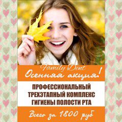 Каждому клиенту, залечившему три зуба, в течении двух месяцев, предоставлется подарочный сертификат, на бесплатную чистку зубов.